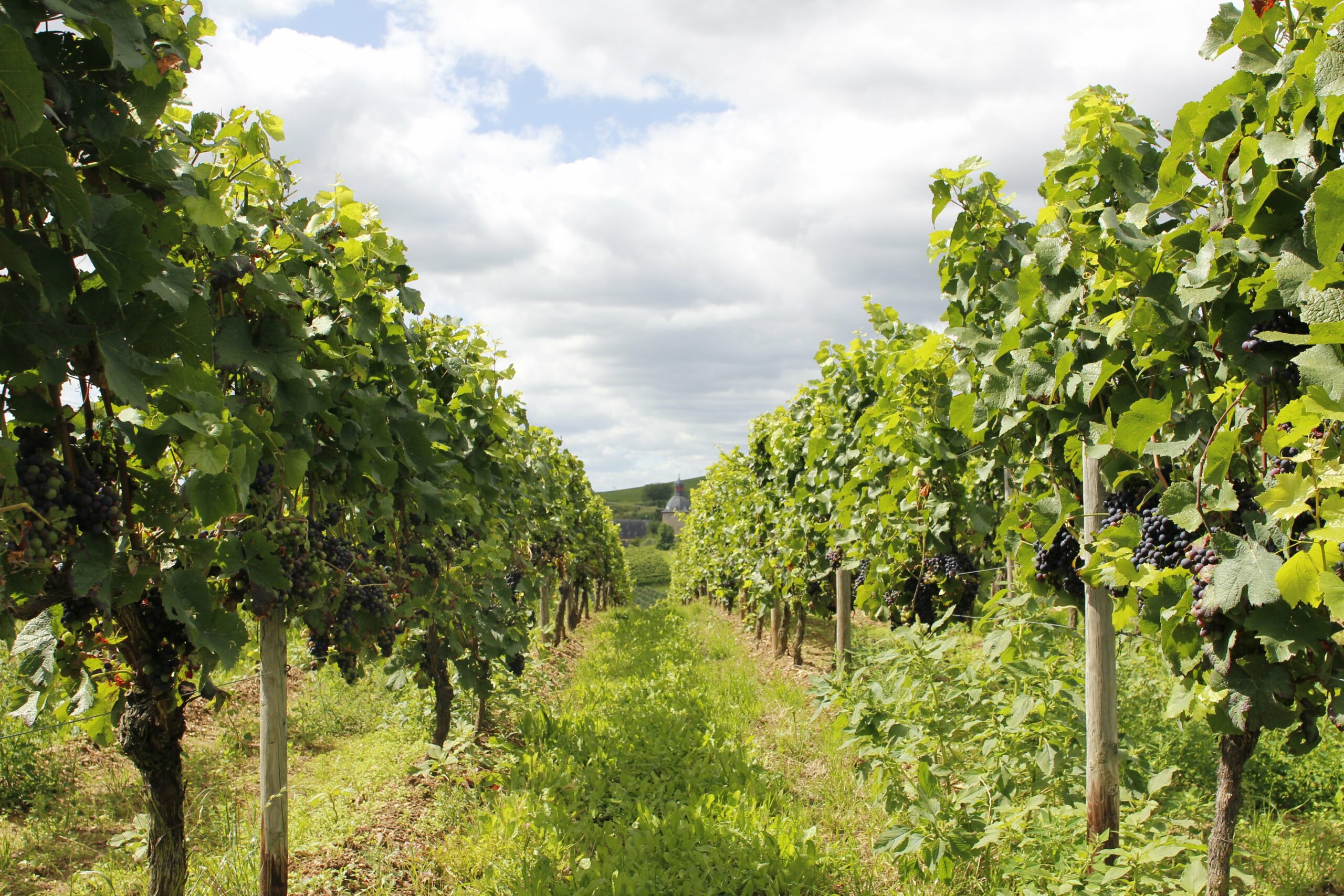 Unser Ziel war es, den Rheingauer-Klostersteig von Oestrich-Winkel über Schloss Vollrads zum Kloster Johannisberg und zurück zum Ausgangspunkt zu laufen. Anfangs ging es durch die Weinberge von Mittelheim (Ortsteil von Oestrich-Winkel) Richtung Schloss Vollrads. Im Innenhof von Schloss Vollrads können durstige und hungrige Wanderer gut eine Rast einlegen und dort in der Gastronomie einen Rheingauer Wein und eine Kleinigkeit zu Essen genießen. Im Sommer lässt es sich schön draußen zu sitzen. Doch auch ohne Hunger und Durst lässt es sich gut kurz im Innenhof verweilen – zu entdecken gibt es etwas. Und gerade im Sommer gibt es häufig auch Hochzeitsgesellschaften zu beobachten.