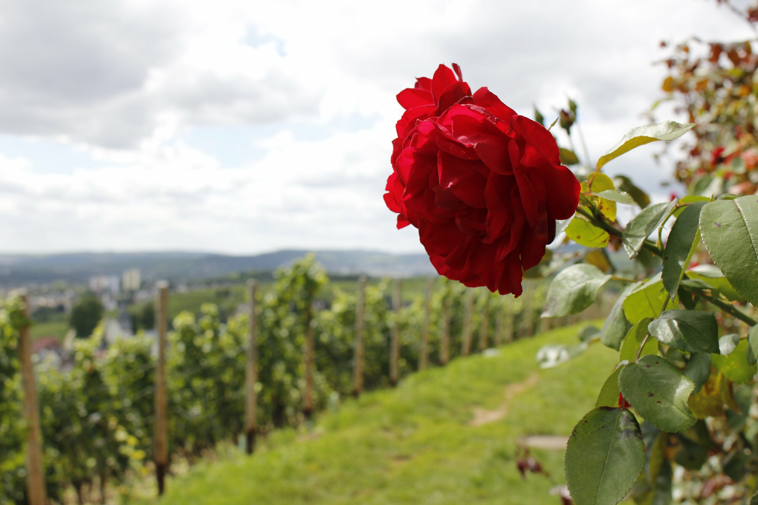 Von Schloss Vollrads sollte es eigentlich ein Stück durch den Hinterlandswald gehen. Da aber der Sturm in der Woche vorher so heftig gewütet hatte, kamen wir nur bis zu einem Absperrband am Waldweg. Also wieder ein Stück zurück und weiter durch die Weinberge mit wunderbaren Blick auf Ingelheim und Bingen Richtung Kloster Johannisberg. Dort angekommen streiften wir durch den Gartenmarkt und schauten von der Terrasse ins Rheintal runter. Auch hier bietet sich wieder die Möglichkeit für eine kurze Rast: Im Café mit Kaffee und Kuchen oder mit einem Piffchen Wein auf einer der Holzbänke mit tollem Ausblick.