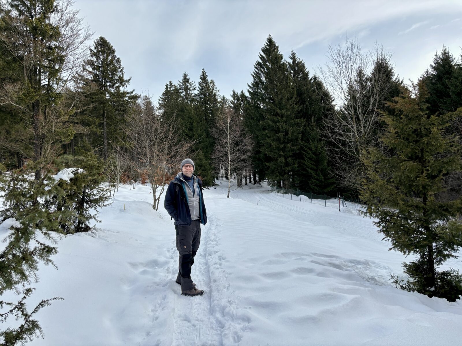 Zwei Gipfel erwandern wir in St. Englmar auf einer schönen Winterwanderung: den Predigtstuhl (1024 Meter) und den Knogl (1056 Meter). Unterwegs sind wir dieses Mal ohne Schneeschuhe, doch wir wären auch gut mit diesen vorangekommen.
